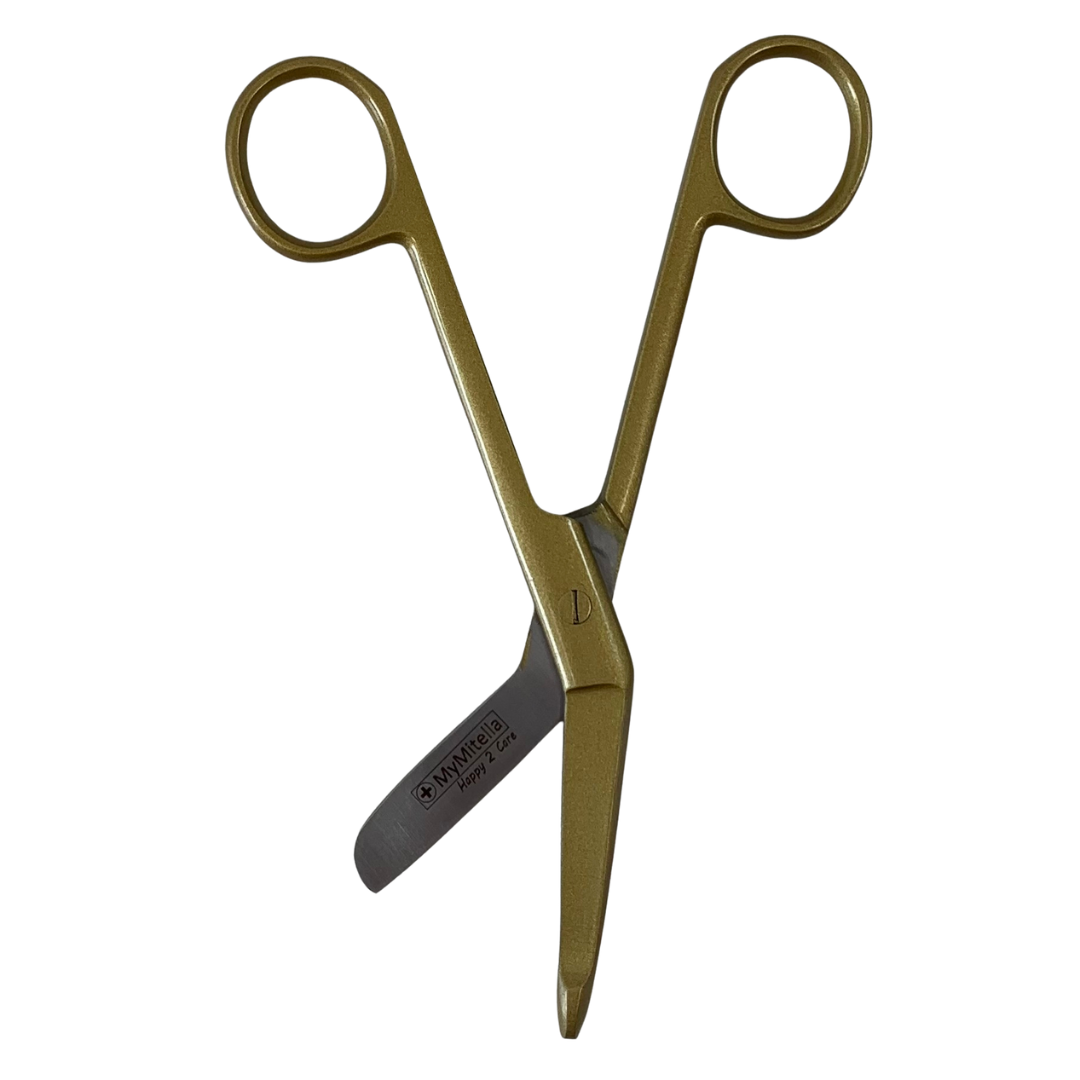 Artikelnummer: VBS-4831Mooie en sterke RVS verbandschaar met een prachtige gouden metallic kleur. De verbandschaar is van hoogwaardig materiaal geschikt voor intensief gebruik in de zorg en zorginstellingen voor het knippen van bijvoorbeeld verband en tape. Met zijn ronde blad maakt hij geen huidbeschadigingen bij het knippen.