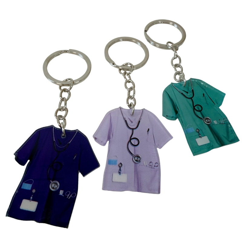 Deze vrolijke sleutelhangers in de vorm van een zorguniform zijn een echte blikvanger. Compleet met stethoscoop, kocher, badge, mondkapje en verpleegkundige schaar in de zakken - hoe leuk is dat? Een perfect cadeau voor artsen, assistenten, studenten of verpleegkundigen. Stevig lichtgewicht en super origineel.