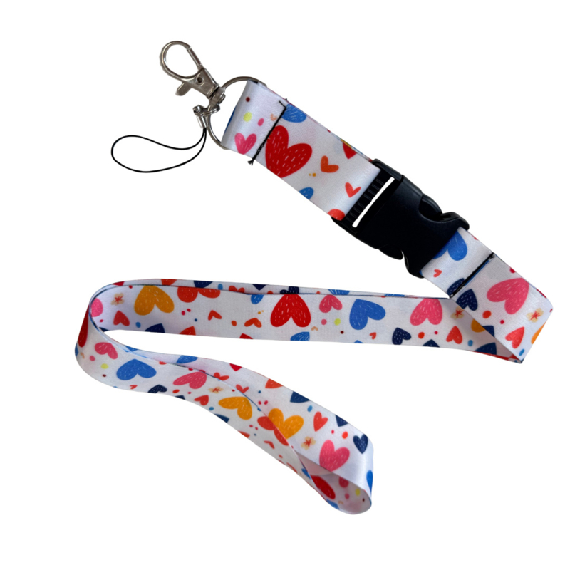 Artikelnummer: LK-22Een sleutelkoord-keycord met een toffe print van hartjes in vrolijke kleuren.