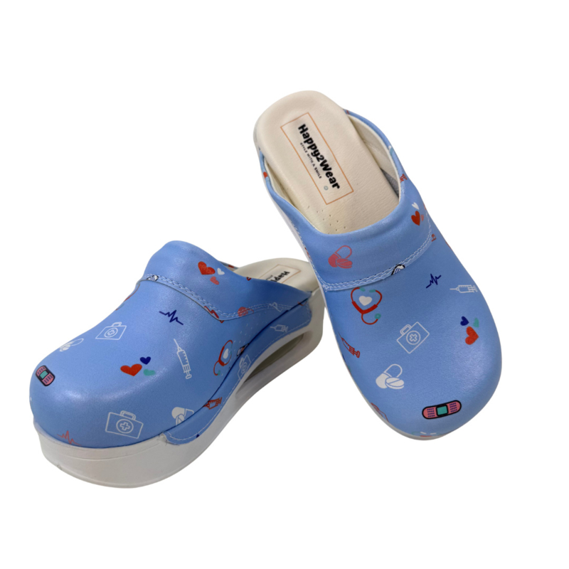 Met de Happy2Wear Air klompen stap je elke ochtend, middag of avond met een vrolijk gevoel de werkvloer op. Ontdek het comfort en draagplezier in zorgschoeisel. Met de geïntegreerde luchtkussentechnologie van de Happy2Wear "Air" bieden deze klompen een ongeëvenaarde ondersteuning en veerkracht, waardoor elke stap lichter aanvoelt, ook tijdens je drukste diensten.