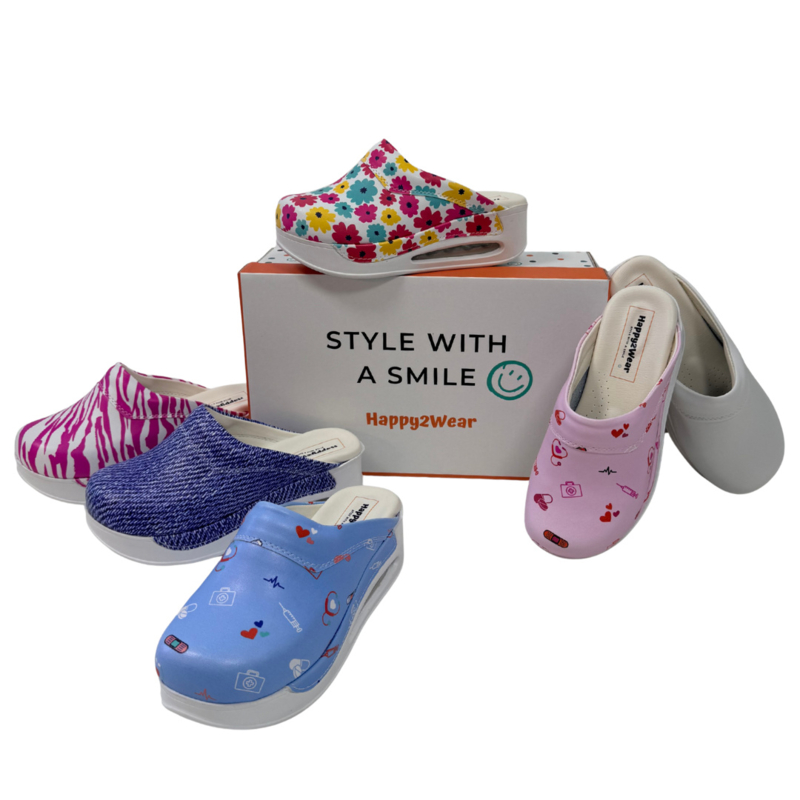Met de Happy2Wear Air klompen stap je elke ochtend, middag of avond met een vrolijk gevoel de werkvloer op. Ontdek het comfort en draagplezier in zorgschoeisel. Met de geïntegreerde luchtkussentechnologie van de Happy2Wear "Air" bieden deze klompen een ongeëvenaarde ondersteuning en veerkracht, waardoor elke stap lichter aanvoelt, ook tijdens je drukste diensten.