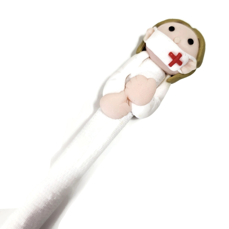 Grappige figuurpen verpleegkundige mondkapje