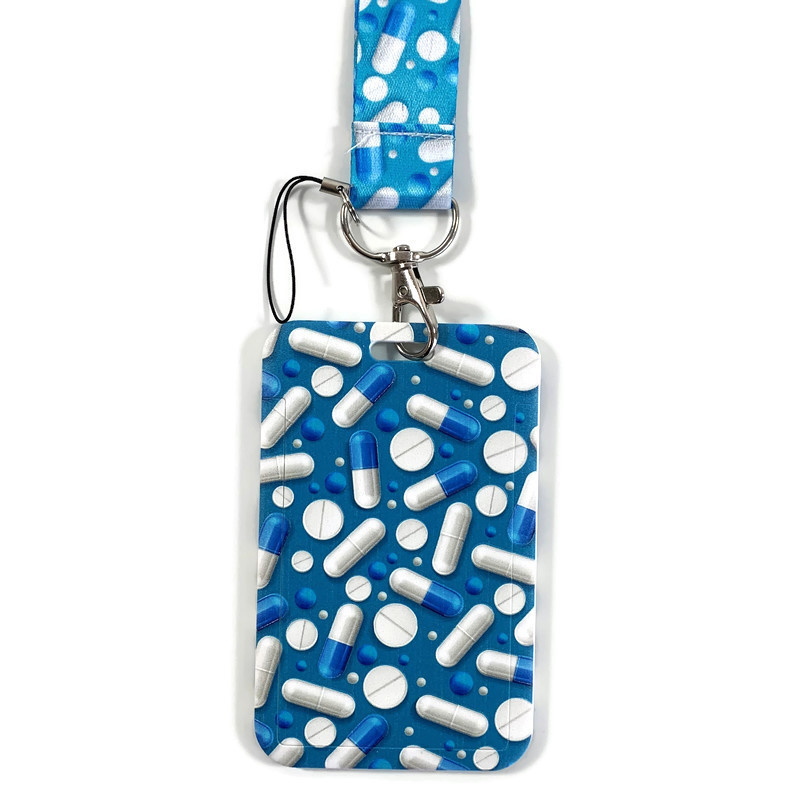 Keycord & pas houder verticaal - Medicatie blauw/wit