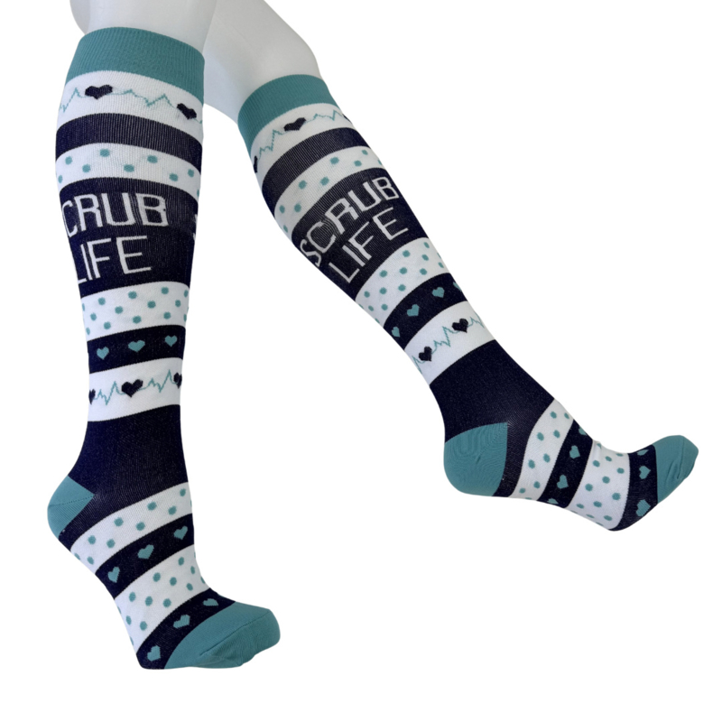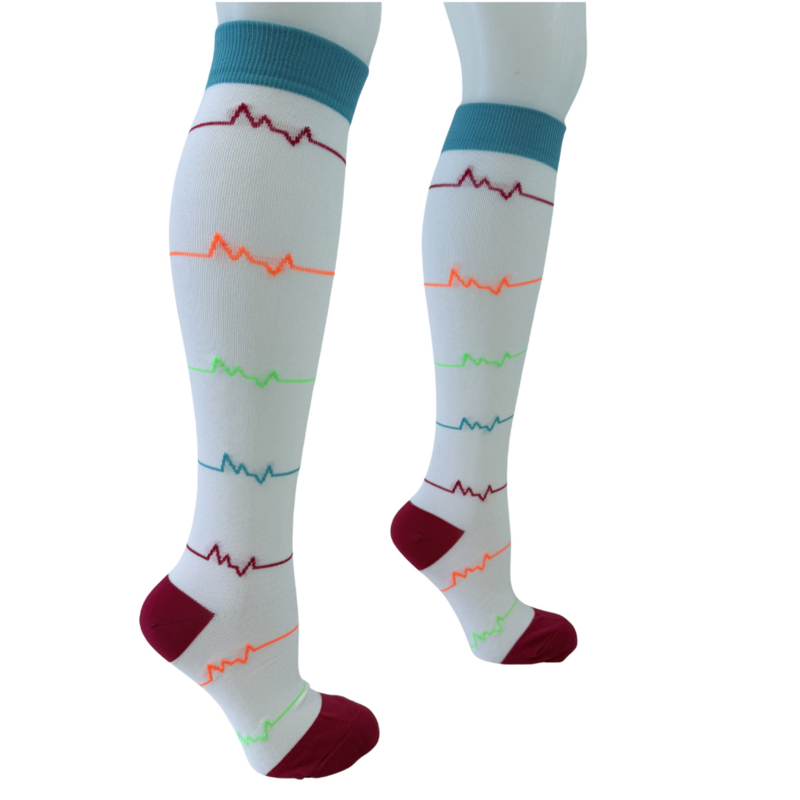 Artikelnummer: CK-040-M03Compressiekousen werken steungevend en tegen vermoeidheid- Een compressiekous wit met kleurrijke details