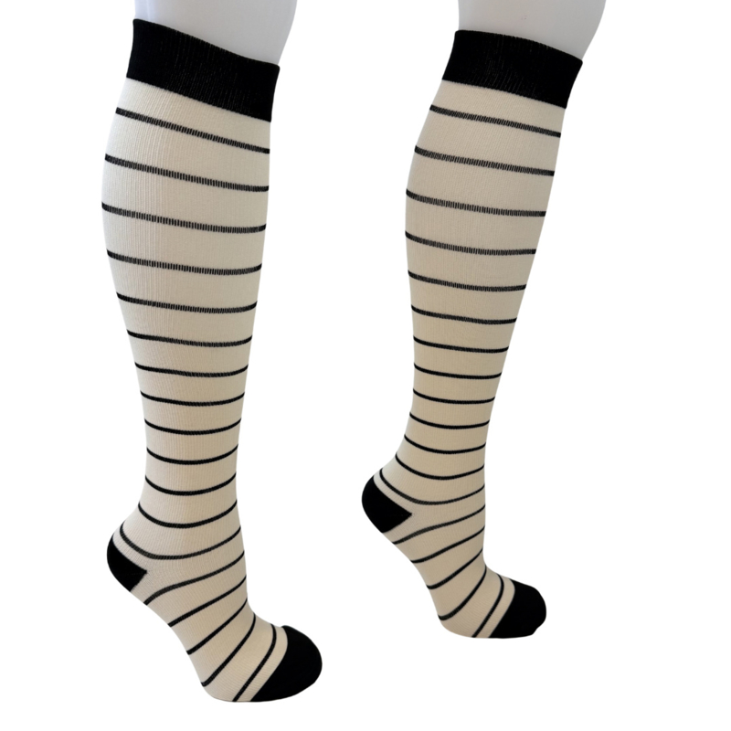 Compressie kousen - Streep Beige Zwart