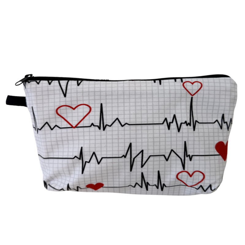 Stoffen tasje met rits - MEDISCHE PRINT - Heartbeat WIT