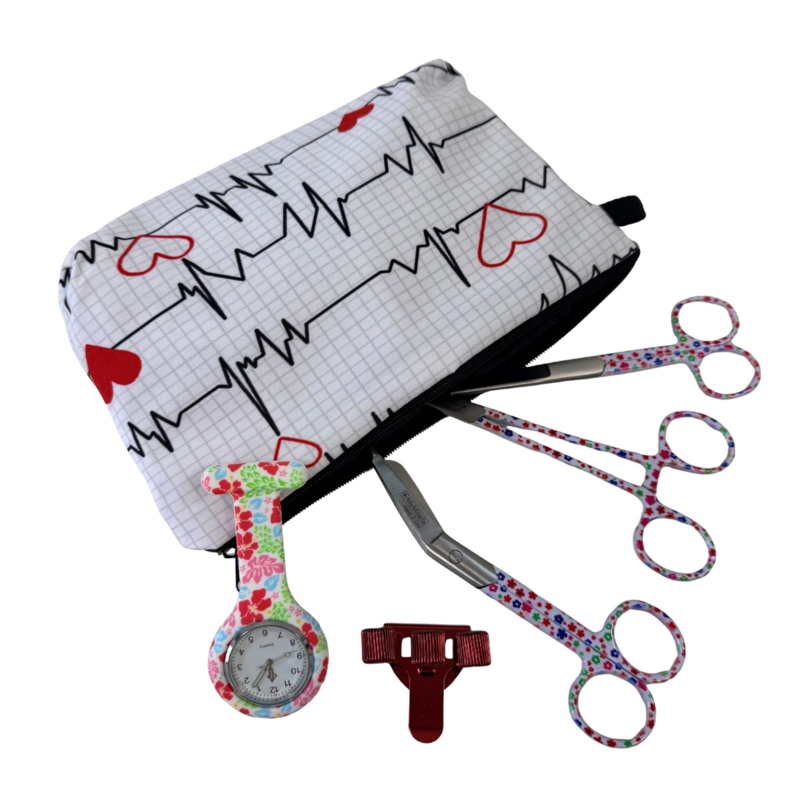 Bewaar je verpleegkundige accessoires, tools, instrumenten en alle spulletjes die je niet los in je tas wil hebben veilig in dit vrolijke buideltje. Met de rits sluit je hem netjes af en zijn je spulletjes veilig opgeborgen. Het tasje is gemaakt van stevig katoen aan de buitenkant en de binnenkant is gevoerd met gewatteerde stof waardoor de spulletjes die er in zitten beschermd zijn.